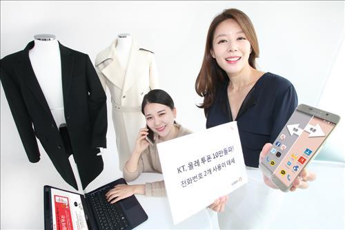 KT´Â ÈÞ´ëÀüÈ 1´ë·Î ÀüȹøÈ£ 2°³¸¦ ÀÌ¿ëÇÒ ¼ö ÀÖ´Â ºÎ°¡¼ºñ½º £§¿Ã·¹ÅõÆù£§ °¡ÀÔÀÚ°¡ Ãâ½Ã 4°³¿ù ¸¸¿¡ 10¸¸¸íÀ» ³Ñ¾ú´Ù°í 4ÀÏ ¹àÇû´Ù.